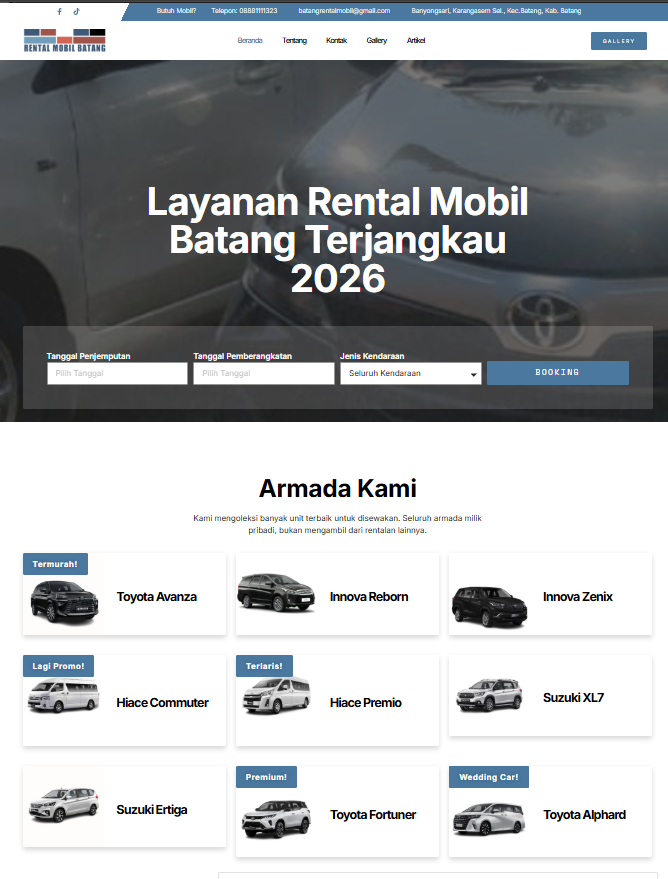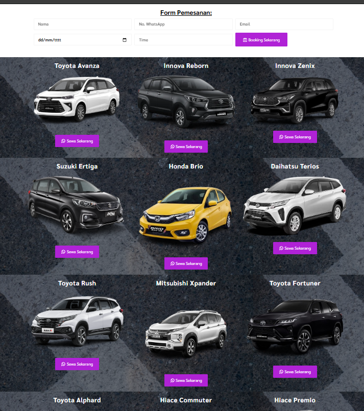 Silakan hubungi kami setelah order pembuatan website rental mobil.